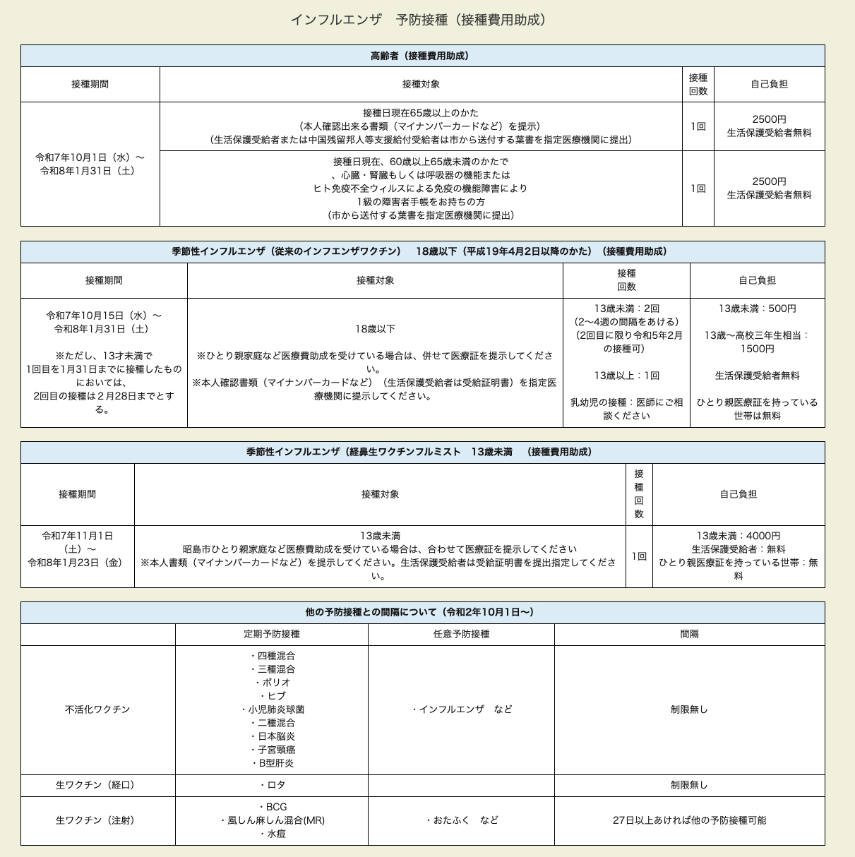 接種期間) 令和7年10月1日から令和8年3月31日